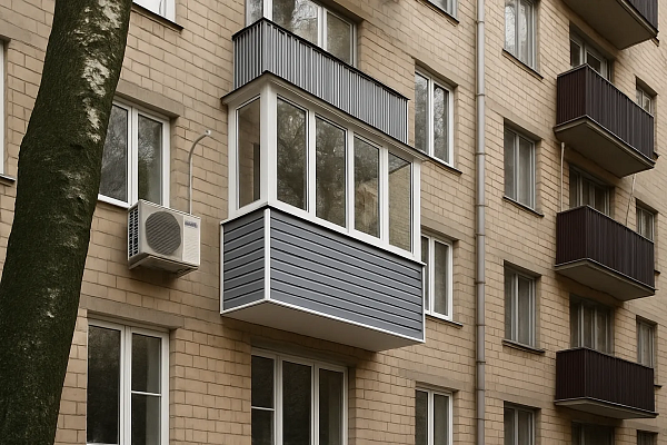 - Остекление с выносом: Позволяет расширить полезную площадь за счет смещения остекления наружу на 25-30 см. Вариант «с выносом по подоконнику» особенно актуален для узких балконов в «хрущевках».
